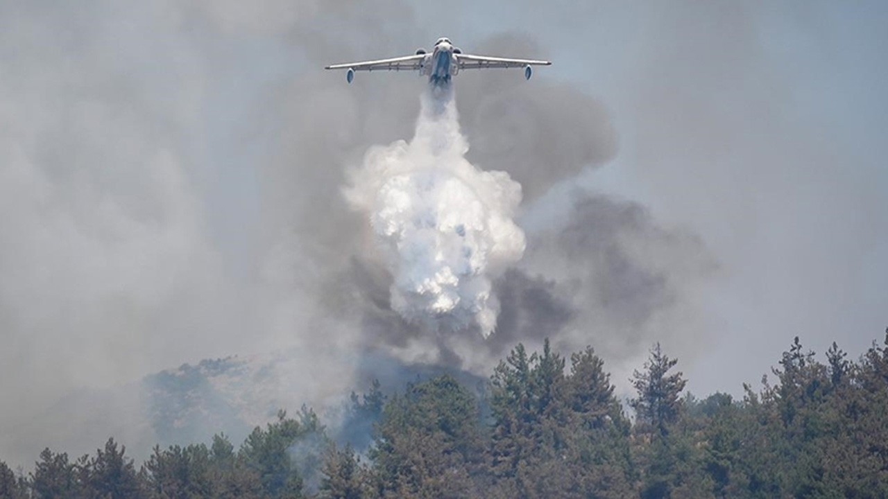 Havadan helikopterle de müdahale edilen yangına, karadan ekiplerin müdahalesi sürüyor.