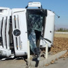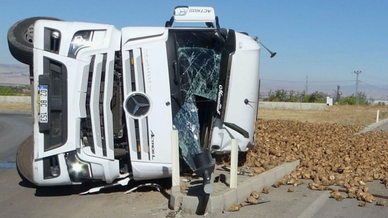 Çankırı'da pancar yüklü tırın devrilmesi sonucu sürücü ağır yaralandı.