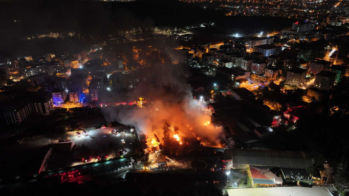 Yükselen alevler gece karanlığında birçok ilçeden görüldü, yoğun duman oluştu.