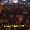 Protestocular önce "şerait", "şerait" diyerek başkanın hatasını düzeltti ardından da hep bir ağızdan başkanı yuhaladı.