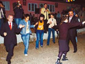 Abone olAdana’nın Ceyhan ilçesine bağlı Doruk Beldesi’nde önceki akşam düğün havasında yapılan Cumhuriyet Bayramı Şenliği’nde çiftetelli oynanıp, halaylar çekildi. Sahnedeki iki isim ise ulu önder Atatürk’ün kurduğu Cumhuriyet Halk Partisi’nin milletvekilleriydi. 2 vekil, Cumhuriyet onuruna yerel sanatçıların söylediği türküler eşliğinde çiftetelli oyanayıp göbek attı. Yetmedi, oyanayan genç kızları masaya çağırıp alınlarına para yapıştırdı. Tacidar Seyhan, çiftetelli oynayan gençlerin arasına katılıp, göbek atarken, Kemal Sağ kameralı cep telefonuyla bu anı görüntüledi.