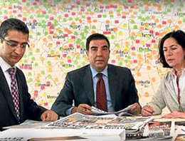 Her rengin bir dili var. Bu bizim stratejimiz için önemli bir ayrıntı olduğu için onu paylaşmıyoruz. Bütün bölgeler, iller ve ilçeler bu harita üzerine işlendi. Çalışmalarımızı yaparken bu renklerden yola çıkıyoruz. Nerede ne yapacağımızı ve yönümüzü haritamıza bakarak belirliyoruz. Ama şunu söylememde sakınca yok sanırım. Bazı kentlerin üzerinde asılı olan mor post-itler havaalanı küçük olan illerimiz anlamına geliyor. Miting programını ayarlarken bütün bunları dikkate aldık.