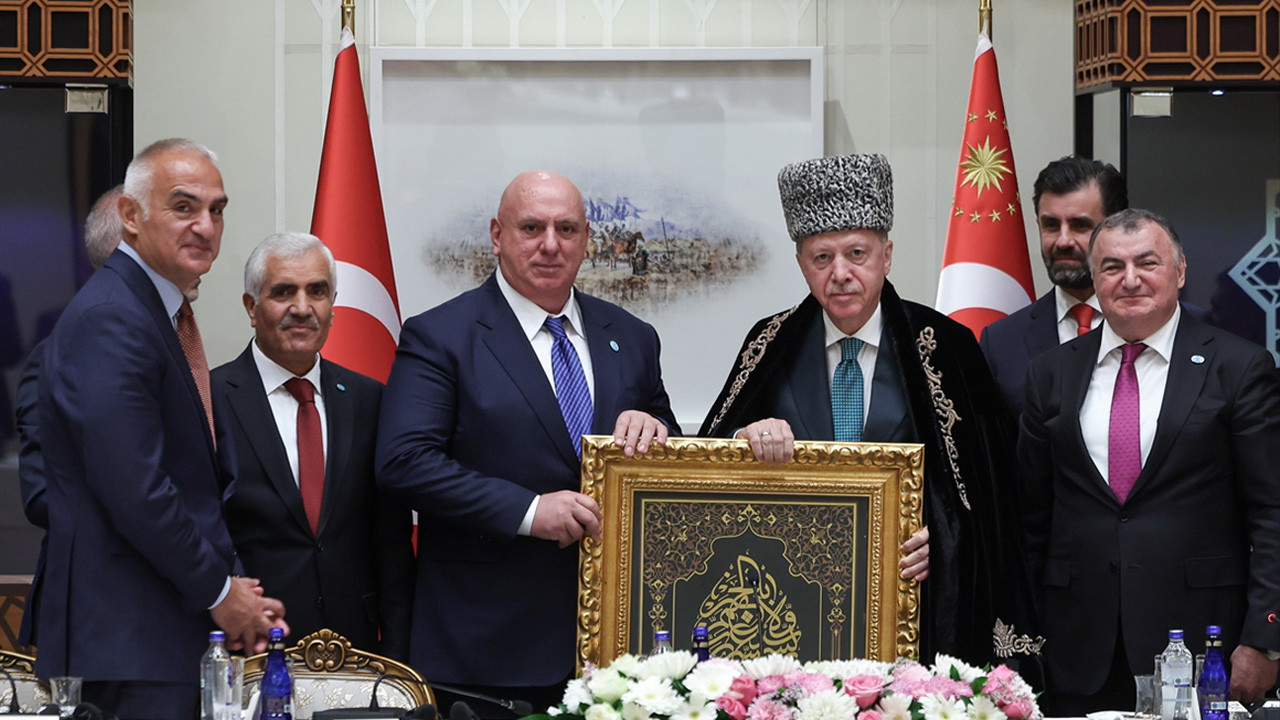 Heyet tarafından Cumhurbaşkanı Erdoğan'a Kafkas kalpağı papak, han kaftanı, Çırçırlı Ali Efendi'nin "Rabbi Yessir" duasının yer aldığı hat tablosu ve Türk boylarını simgeleyen kalem hediye edildi.