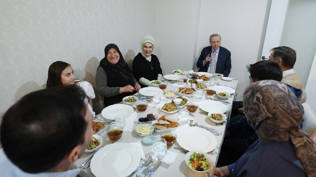 Cumhurbaşkanı Recep Tayyip Erdoğan ve eşi Emine Erdoğan, Ankara'da Murat ve Alime Fidan ailesini ziyaret ederek iftar yaptı. İftar sonrası aileyle sohbet eden Erdoğan çifti, çocuklarla yakından ilgilenirken, ziyarete Ankara Valisi Vasip Şahin ve AK Parti Ankara İl Başkanı Hakan Han Özcan da eşlik etti.