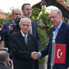 Cumhurbaşkanı Erdoğan ve Bahçeli, tokalaşarak gazetecilere poz verdikten sonra görüşmeye geçti.