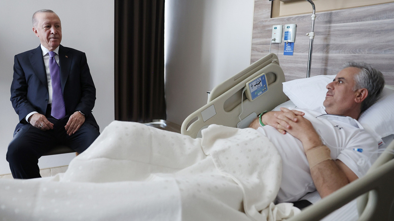 Yalçın'ı hastane odasında ziyaret ederek "geçmiş olsun" temennisinde bulunan Erdoğan, doktorlardan sağlık durumuna ilişkin bilgi aldı.