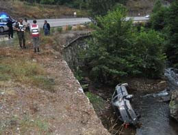 Bursa-Ankara karayolunda dereye uçarak hurdaya dönen otomobilin sürücüsü, araçtan burnu bile kanamadan çıktı.