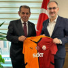 Galatasaray camiası adına iyi dileklerini ileten Özbek, Şahin'e Galatasaray forması hediye etti.