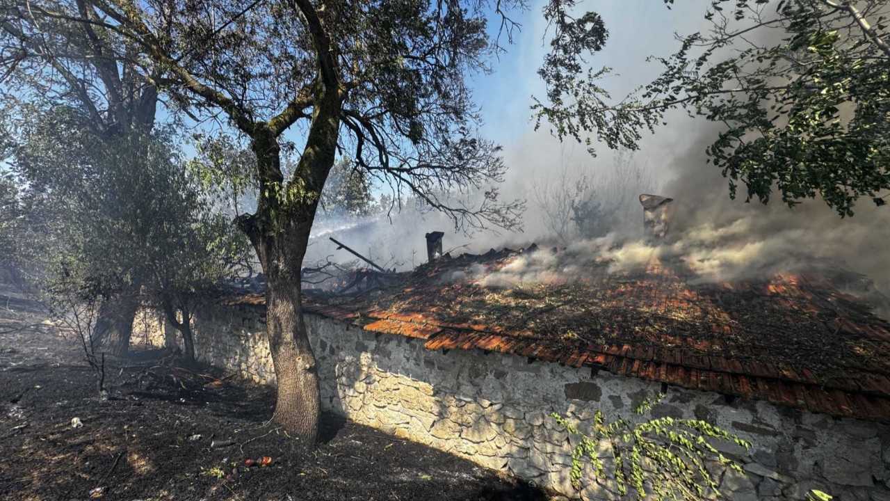 Yangında metruk bir çiftlik evi ile yaklaşık 2 bin dekar anız alan zarar gördü.