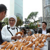 Stanttan bir tane simit alan Emine Erdoğan, simidin ABD'de yaygın olarak tüketilen "bagel"e rakip olduğunu ifade etti.