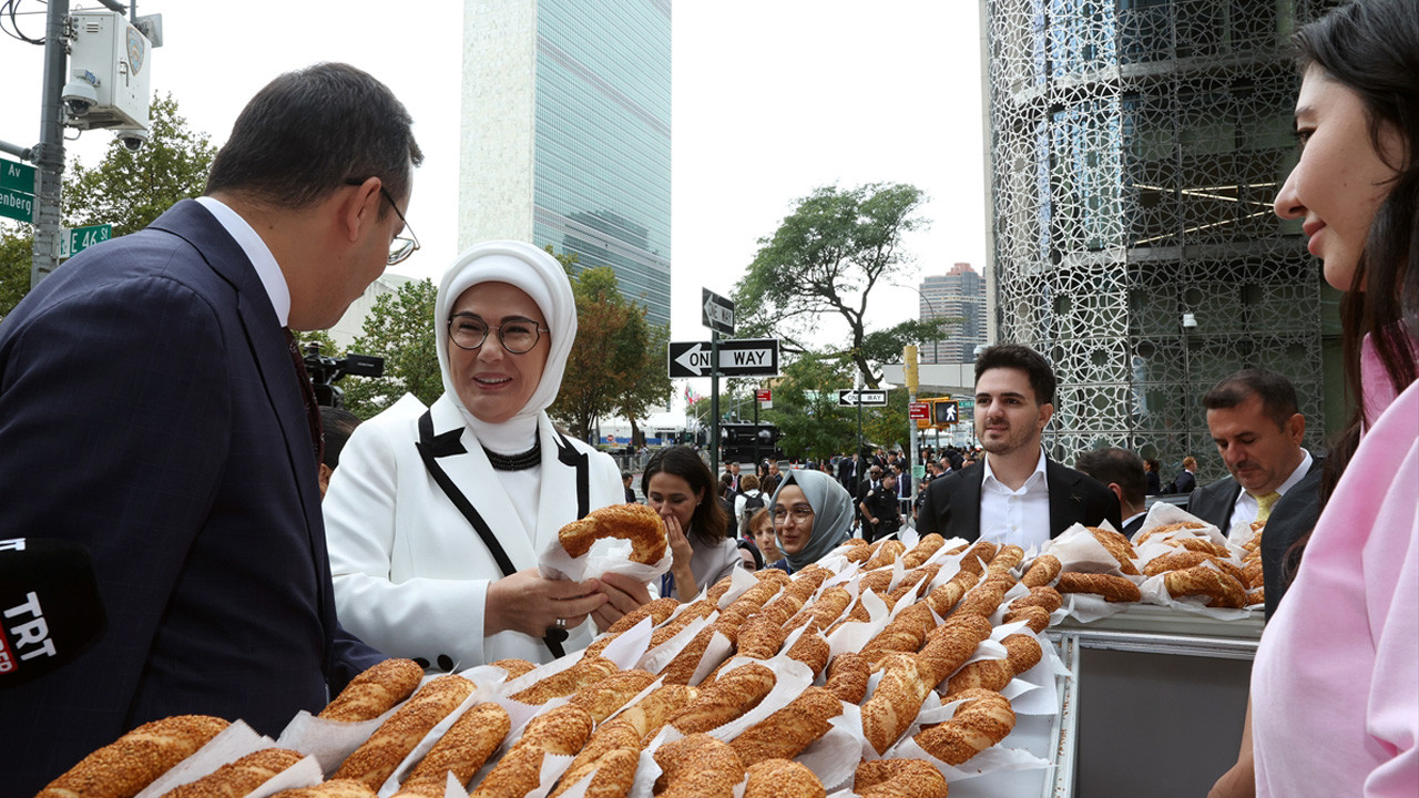 "Anadoludakiler" projesinin tanıtımı için simidin yanı sıra New Yorklulara yapılacak başka ikramlar hakkında bilgi alan Emine Erdoğan, daha sonra Türkevi'ne girdi.