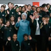 Videoda ayrıca Emine Erdoğan'ın, okuldan ayrılışı sırasında kendisini okul önünde bekleyen çocuklarla ve vatandaşlarla bir araya geldiği görüntüler de yer aldı.