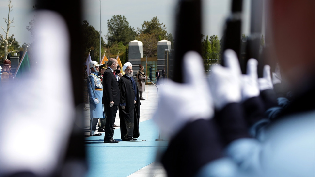 İKİ ÜLKENİN MİLLİ MARŞI ÇALINDI Cumhurbaşkanı Erdoğan, Ruhani'yi Cumhurbaşkanlığı Külliyesi'nin ana giriş kapısında karşıladı. Erdoğan ve Ruhani'nin tören alanındaki yerlerini almasının ardından, 21 pare top atışı eşliğinde iki ülkenin milli marşları çalındı.