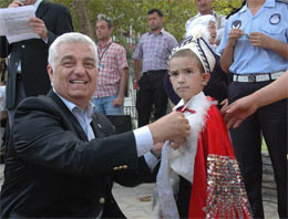 Konuşmaların ardından Belediye Başkanı Osman Gürün çocuklara çeyrek altın takarken, sünnet çocuklarına oyuncak hediye etti.