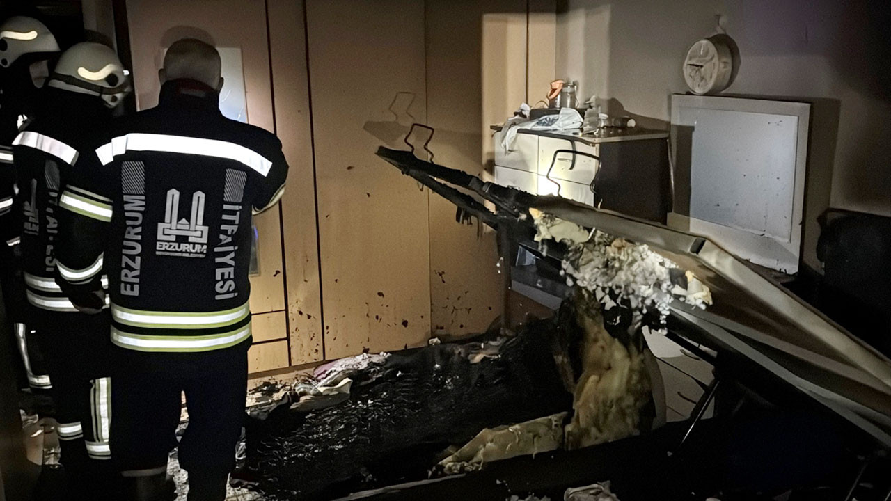 Erzurum'un Palandöken ilçesinde bir apartmanın zemin katında çıkan yangında 16 kişi dumandan etkilendi, yangını çıkardığı iddia edilen ev sahibi gözaltına alındı.