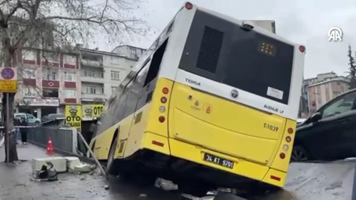 İlk önce kaldırıma çıkan otobüs, daha sonra yol kenarındaki otopark ve oto yıkama olarak faaliyet gösteren bir işletmeye daldı.