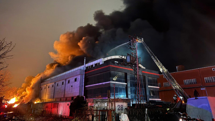 Esenyurt'ta bir kahve firmasına ait fabrikada çıkan yangına itfaiye ekipleri müdahale ediyor.