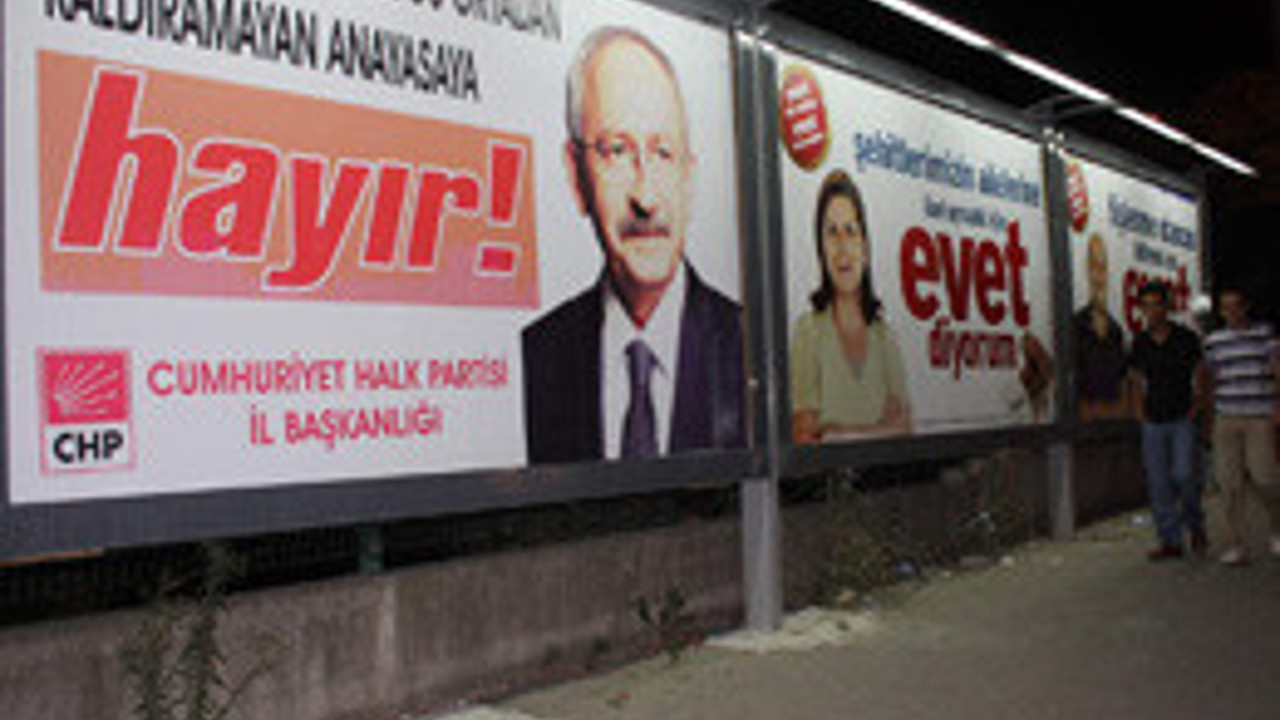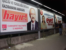 'Evet' kampanyası yürüten AK Parti ile 'hayır' çağrısında bulunan muhalefetin ilanları yanyana billboardları süslüyor.