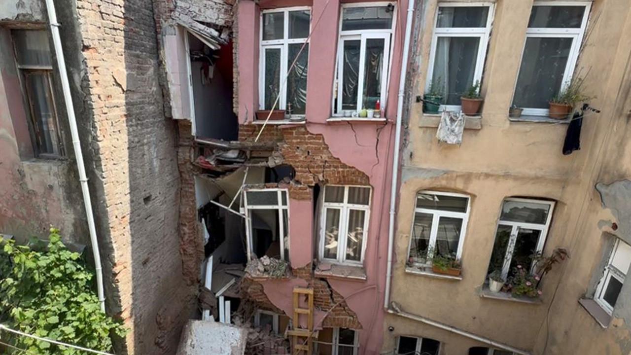 Fatih'te bir binanın arka cephesinde oluşan kısmi çökme nedeniyle bitişikteki bazı binalarda hasar oluştu.