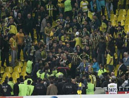 Üst tribünden sarkıtılan pankarttan dolayı sahayı göremediğini gerekçe gösteren bir taraftar pankartı aşağıdan çekiştirince, taraftarlar arasında kavganın başladığı ifade edildi.