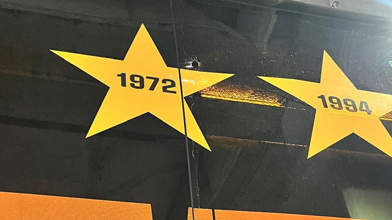 Galatasaray’ın 5’inci yıldız monte edilen otobüsünün bir camı atılan taş sonrası kırıldı.