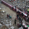 Gazze Şeridi'nin kuzeyindeki Gazze kentinin Eş-Şucaiyye Mahallesi'nde yüzlerce Filistinli, ilk iftarlarını harabeye dönen sokaklarda, enkaz yığınları arasında kurdukları büyük bir sofrada toplu olarak yaptı.