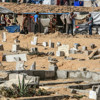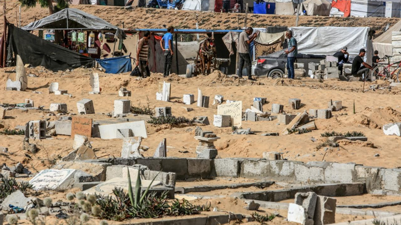 Kuzeyden göç eden ve bu düşünceyle hareket eden çok sayıda Filistinli, Han Yunus'taki Beyt Derras Mezarlığı'na çadır kurdu. Bu manzara, Gazzelilerin sürekli dillendirdiği "Bizler yaşayan ölüleriz" ifadesini doğrular nitelikte.