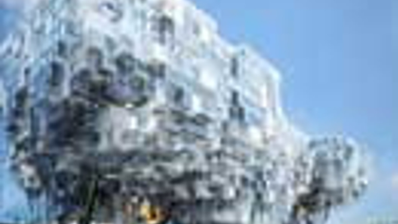 Farklı sıralarda yerleştirilen küpler pikselleşmiş görünümlü heykelimsi bir bina yaratıyor ve dijital bir bulut gibi algılanıyor.