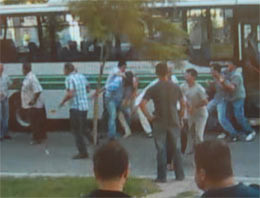Adana'da kaza yapan özel halk otobüsü şoförlerinin demir sopalı, yumruklu kavgası saniye saniye görüntülendi.