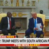 Trump, ABD ile Güney Afrika arasındaki konular ve "beyaz çiftçilere soykırım" iddialarının konuşulduğu sırada, "Katar'ın ABD'ye hediye ettiği uçak" sorusunu soran NBC News muhabirine sert tepki gösterdi.