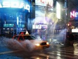 Sağnak yağmur kenti döverken, 2,4 metreye yükselen suların Manfhattan adasının sel savunma hattını aşmasından korkuluyor.
