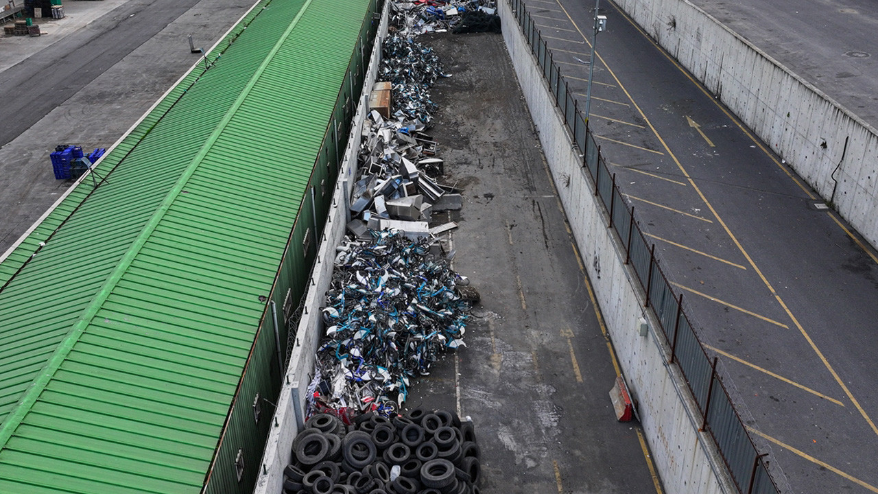 Kırılan bisikletlerin deponun belli bölgelerinde diğer hurda ürünlerin arasında üst üste konularak dizildiği görüldü.