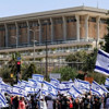 İsrail'in Gazze'de sürdürdüğü saldırılarını durdurmasını talep eden aktivistler, İsrail Meclisinin önüne kefene sarılmış temsili çocuk cenazeleri yerleştirdi.