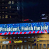İsrail'de, ABD'nin İran'a yönelik saldırılara katılmasını sağlamak amacıyla yürütülen kamuoyu kampanyası kapsamında, ABD Başkanı Donald Trump’a hitaben "Bay Başkan, işi bitir" yazılı bir pankart asıldı.