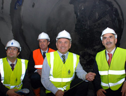 Tünel içinde ve dışında Başkan işçilerle hatıra fotoğraf çektirdi.