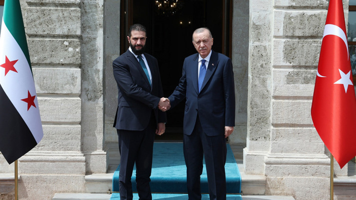 ABD ve AB'nin Suriye'ye yönelik yaptırımları kaldırma kararından sonra Türkiye'ye ilk ziyaretini gerçekleştiren Şara'ya, yaptırımların kaldırılmaya başlanmasının Türkiye tarafından memnuniyetle karşılandığını ifade eden Erdoğan, Suriye'nin toprak bütünlüğünün korunarak, ülkenin ve ordunun tek bir merkezden idare edilmesinin önemli olduğunu kaydetti.