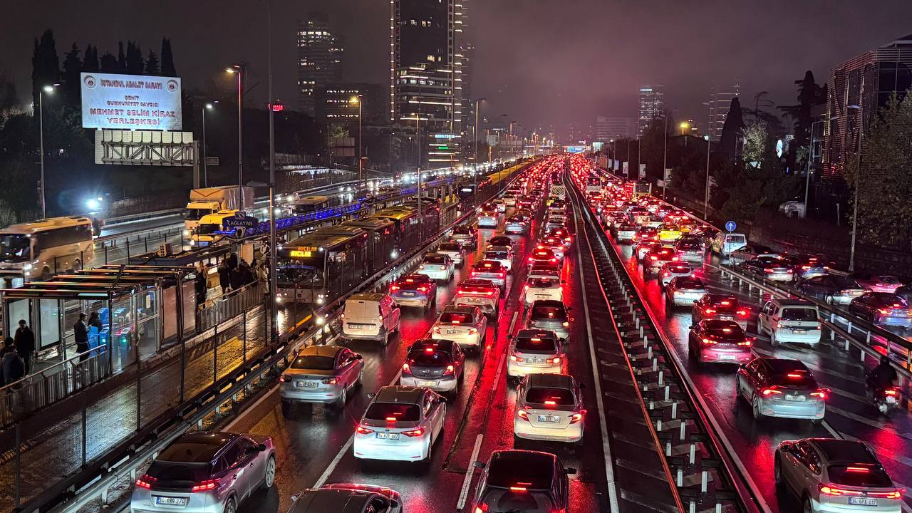 İstanbul’da mesai bitimi ve yağışın etkisiyle kent genelinde trafik yoğunluğu yaşanıyor. Anadolu ve Avrupa yakalarında ana arterlerde aksamalar görülürken, 15 Temmuz Şehitler Köprüsü ve Fatih Sultan Mehmet Köprüsü başta olmak üzere D-100 kara yolu ve TEM Otoyolu’nda trafik ağır ilerliyor. İBB verilerine göre akşam saatlerinde trafik yoğunluğu her iki yakada da yüzde 90’a ulaştı.