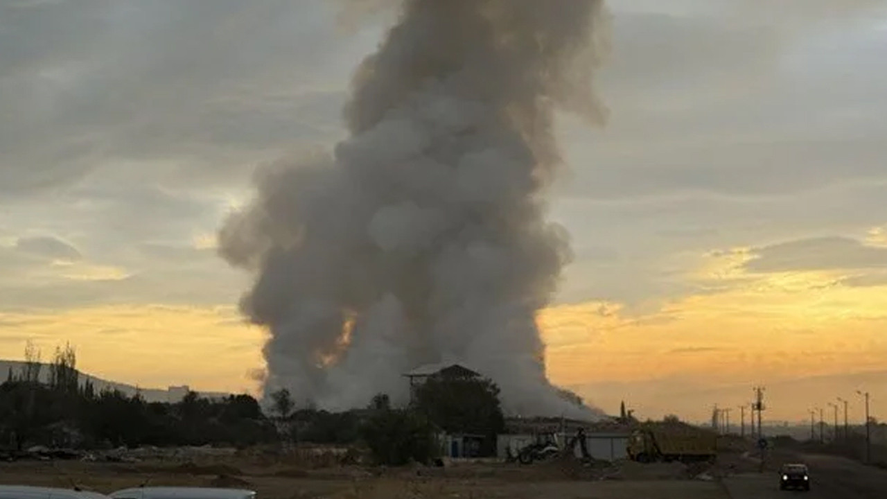 Yangın nedeniyle çıkan duman ve kötü koku ilçe merkezine kadar ulaştı.