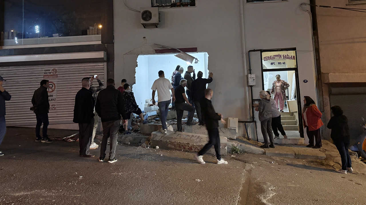 İzmir'in Bayraklı ilçesinde, freni boşalan kamyon, 4 katlı bir apartmanın giriş katındaki dairenin duvarına çarptı.