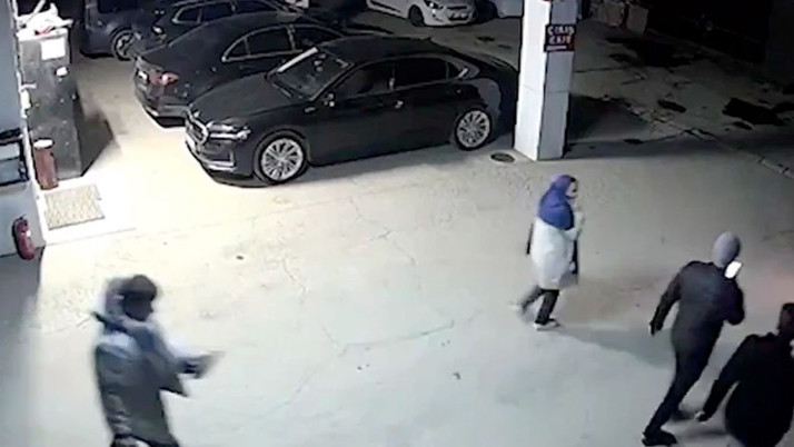 Abone olOtelin otoparkının güvenlik kamera kaydında, dumanların etrafı sarıp kapladığı ve çalışanların otoparka geldiği görüldü.