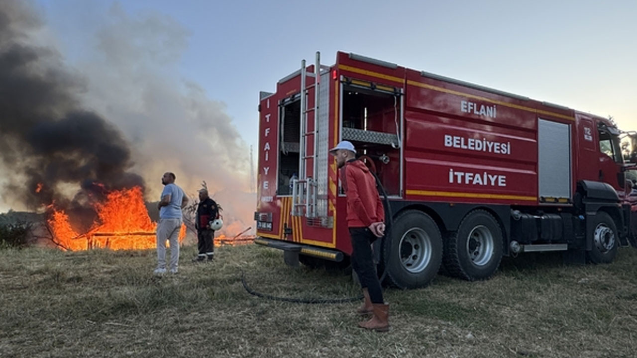 Kısa sürede büyüyen yangın çevredeki samanlıklara sıçradı.