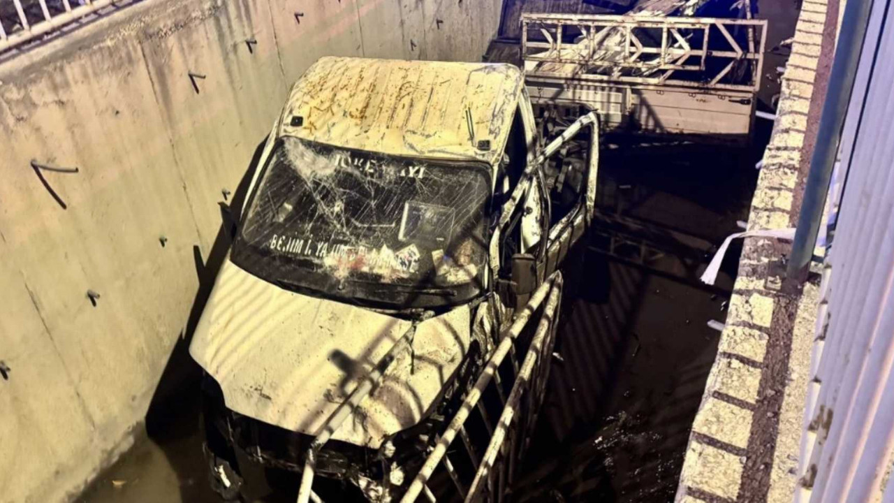A.E'nin kullandığı 38 ABU 830 plakalı kamyonet, Erenköy Mahallesi İğdelidere Caddesi üzerinde kanala düştü.