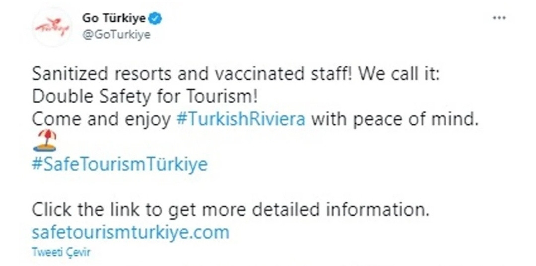 Videonun içeriğinde "Hijyenik oteller ve aşılı personeller ! Biz diyoruz ki: Turizmde çifte güven ! Gelin ve keyfini çıkarın. İçiniz rahat olsun" diyerek paylaşılmıştı.