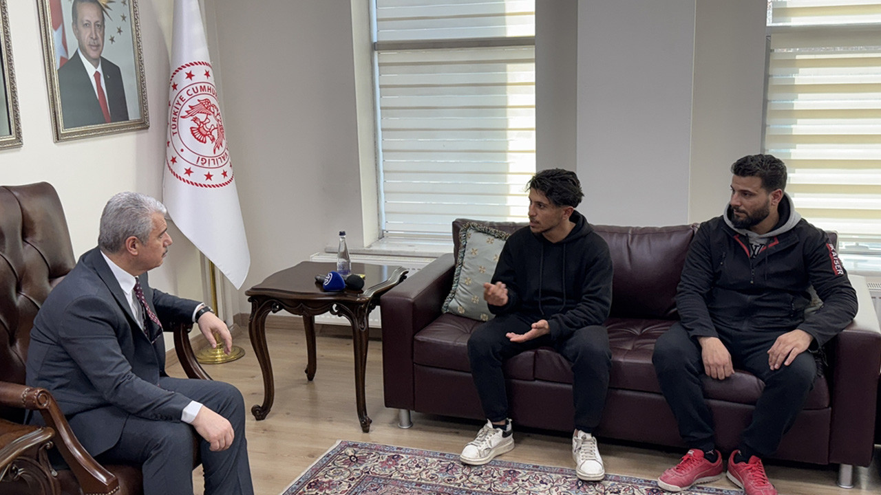 Abone olVali Akın, makamında 20 yaşındaki Ali El Hüseyin ile bir araya geldi.