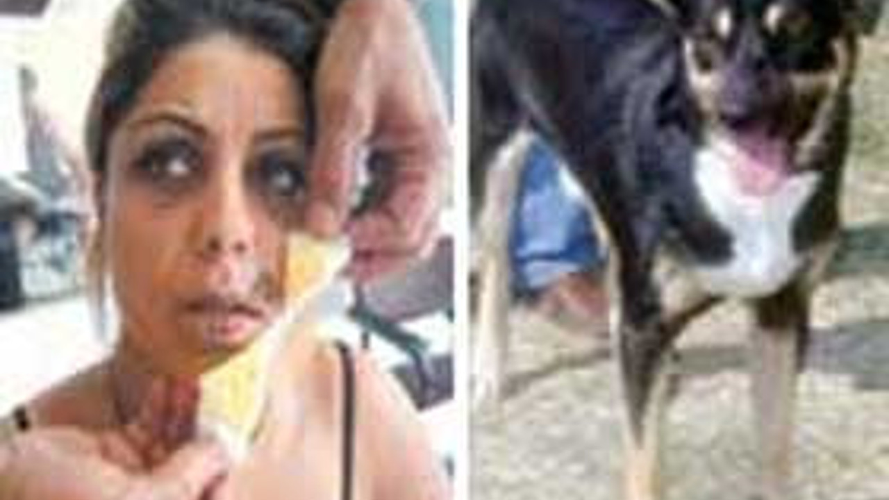 Rotweiler, cinsi köpek plajda güneşlenen genç bir kadının duduklarına saldırdı.
