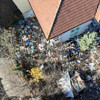 Eve giden polis, zabıta ve belediye temizlik ekipleri, dairenin ve apartmanın bahçesinin çöplerle dolu olduğunu gördü.