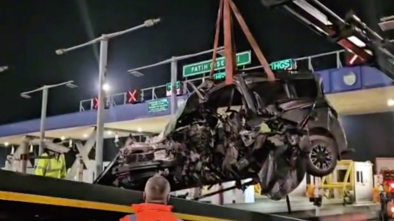 Kaza nedeniyle bir süre trafiğe kapanan yol ve gişeler, temizlik çalışmalarının ardından açıldı.