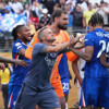 Maçın bitiş düdüğüyle beraber iki takım oyuncuları birbirine girdi. PSG'de Hakimi, Andrey Santon'un üstüne yürüdüğü esnada Joao Pedro araya girdi. PSG Teknik Direktörü Luis Enrique, Pedro'nun boğazı ve omzu arasında vurdu.