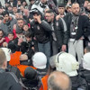 Beşiktaşlı futbolcular ve teknik heyet, alınan mağlubiyetten dolayı tribünlerden bir süre ayrılmayan taraftarlarla konuştu.