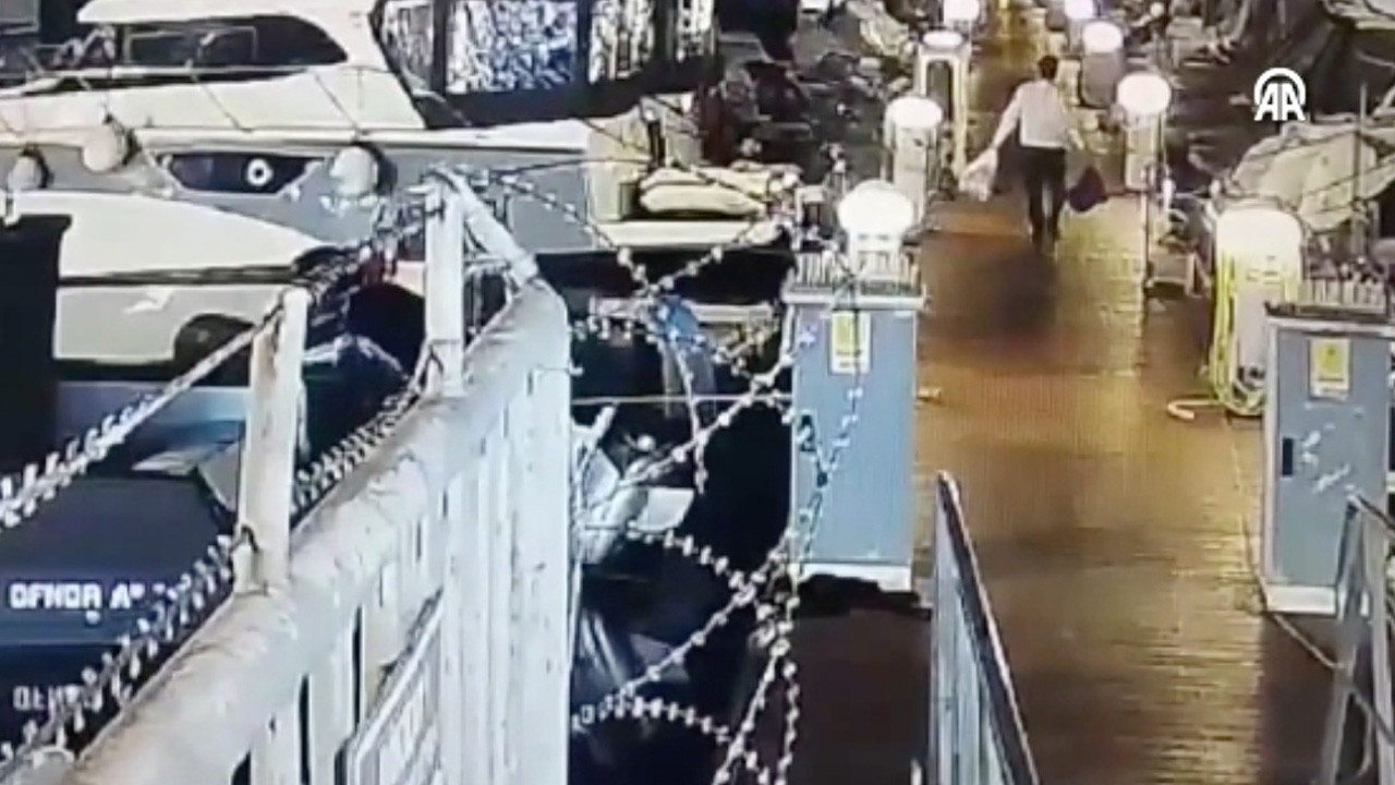 Teknenin açılması, bir anda durması ve geri dönmesi güvenlik kamerasınca kaydedildi.